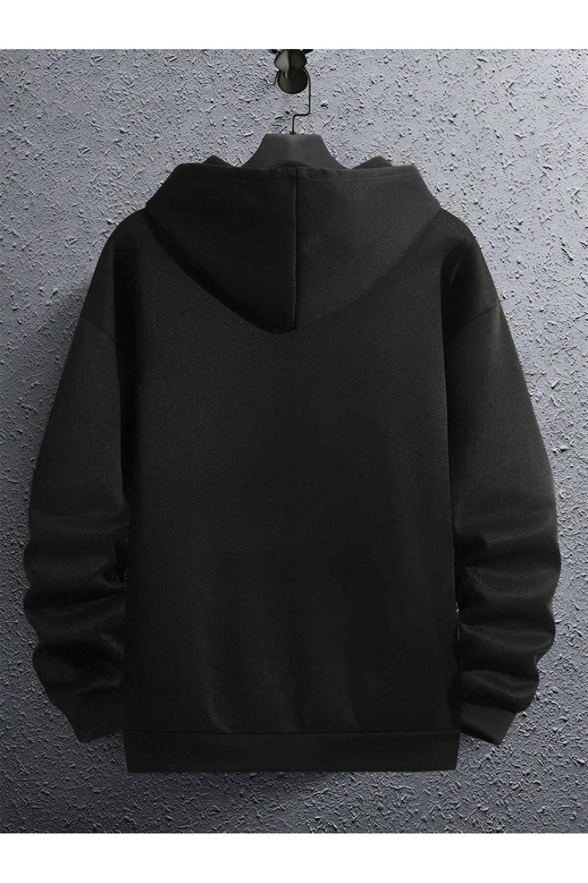 هودي أسود فضفاض بطبعة رجل يبكي أمامية