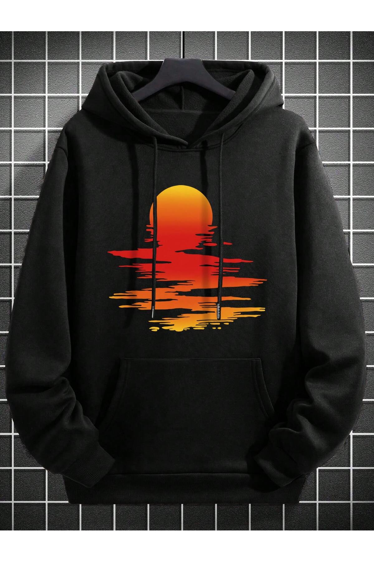 هودي أسود كبير الحجم بطبعة شمس الغروب والذوبان