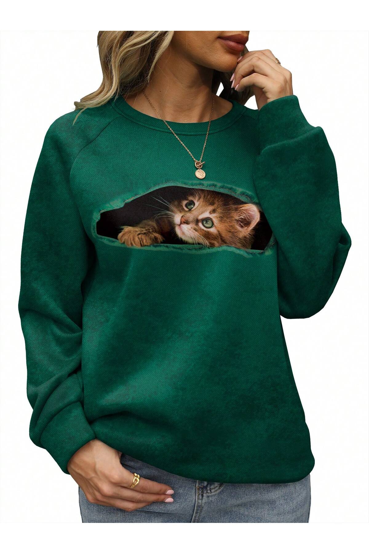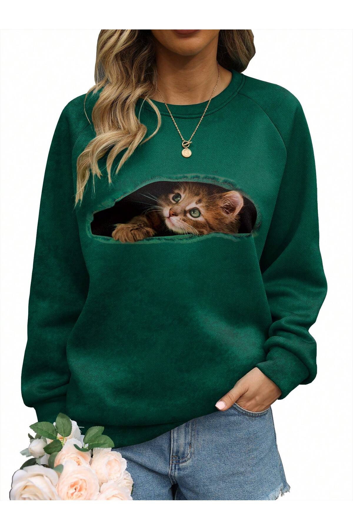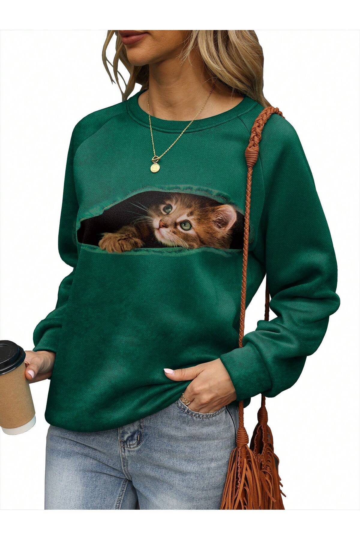 سويت شيرت برقبة دائرية بطبعة قطة داخل قميص