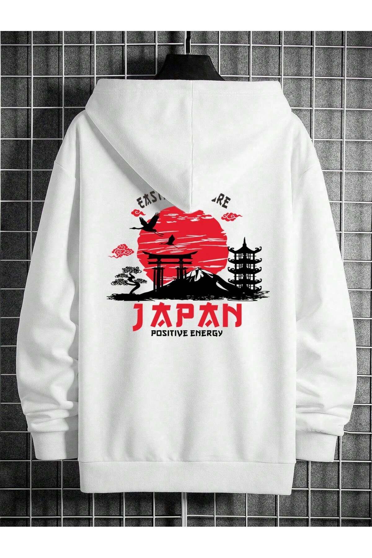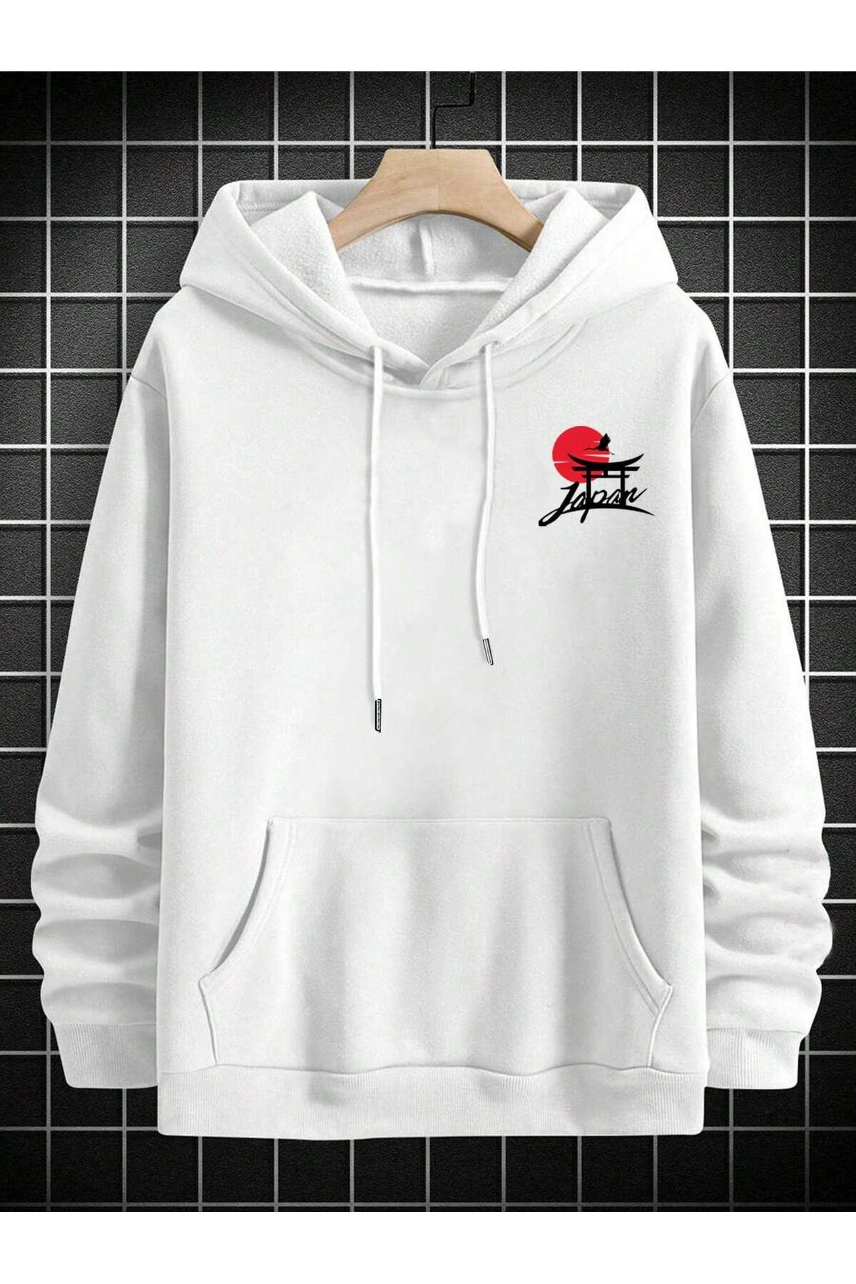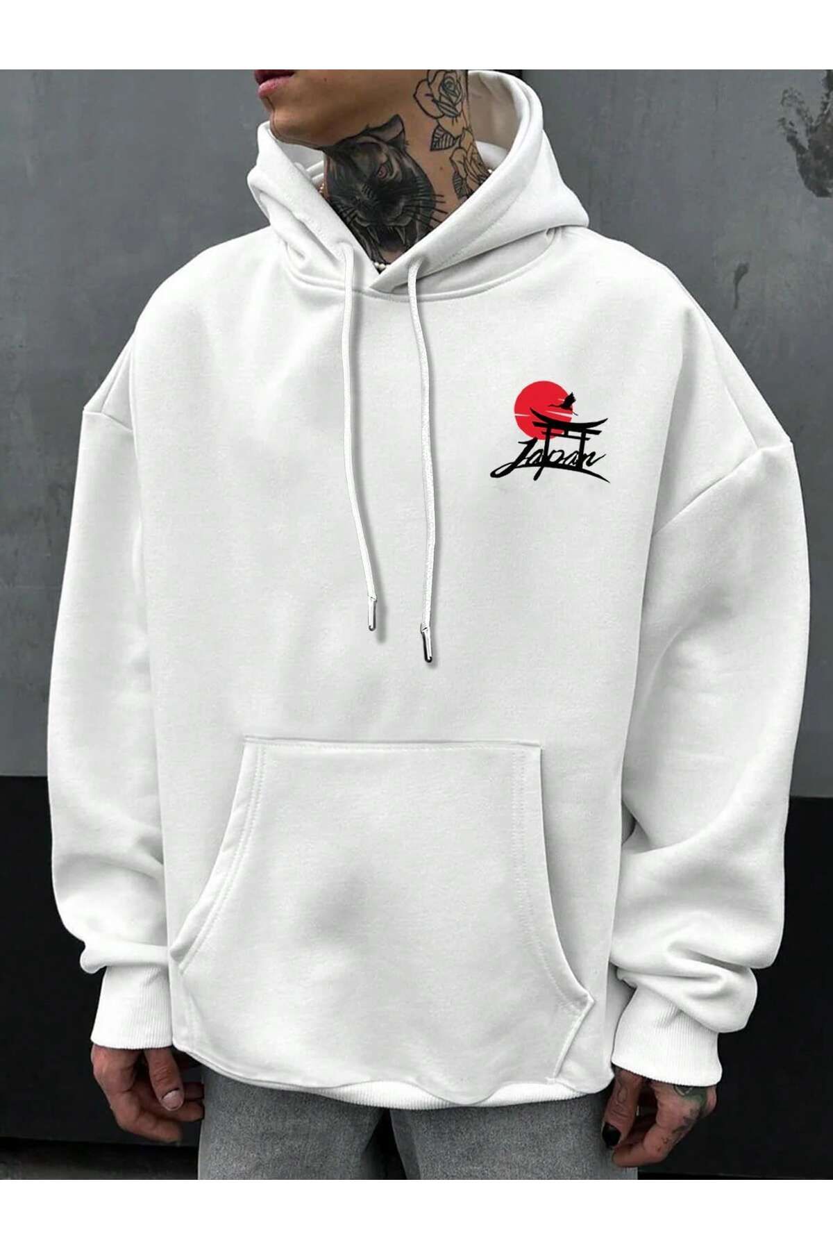 هودي أبيض كبير الحجم بطبعة الشمس اليابانية - هودي عالي الجودة بطباعة رقمية، قماش مريح وتصميم عصري من OBSCUR.