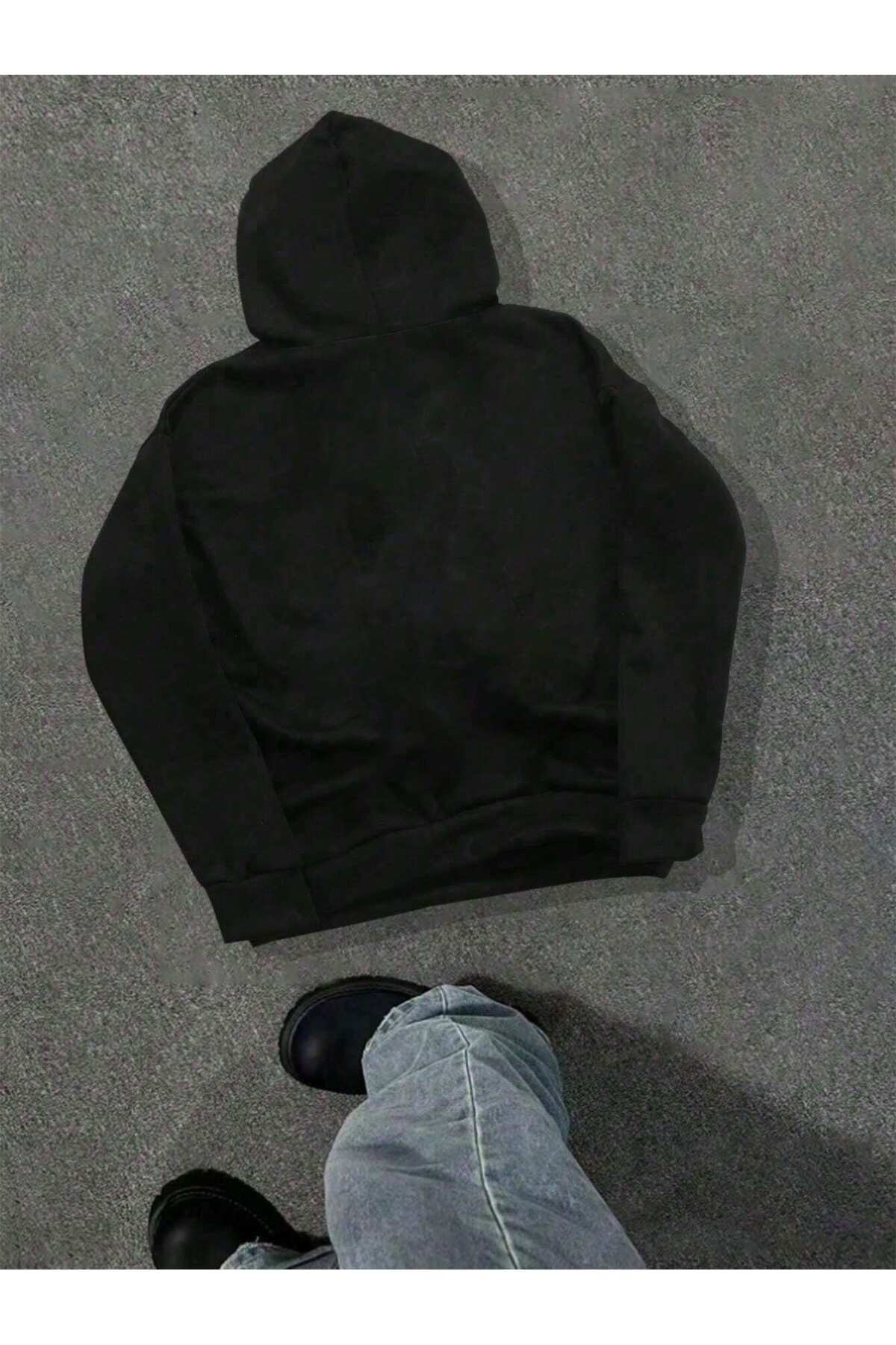 هودي أسود أوفرسايز بطبعة كانساس سبيدواي الأمامية - هودي عالي الجودة بطباعة رقمية، قماش مريح وتصميم عصري من OBSCUR.