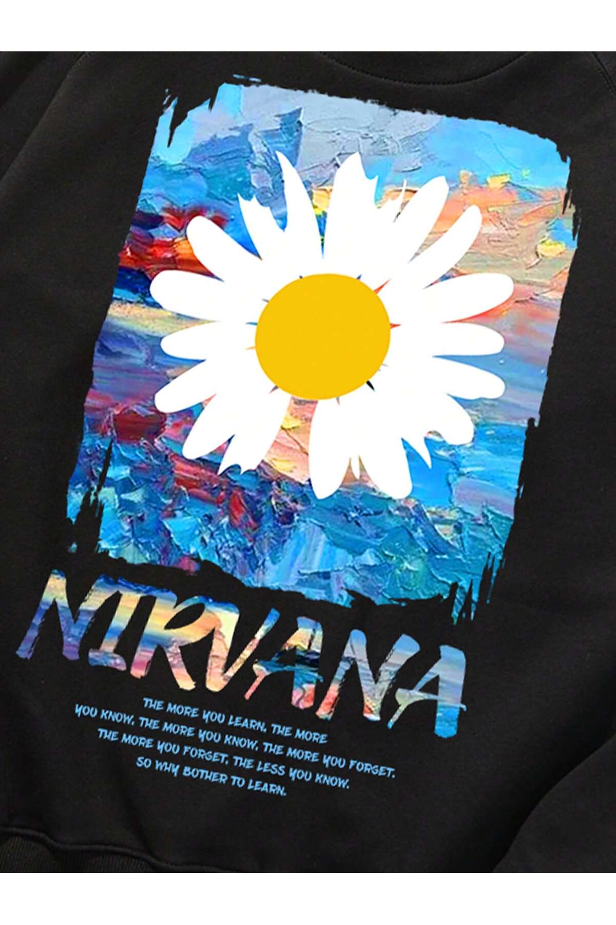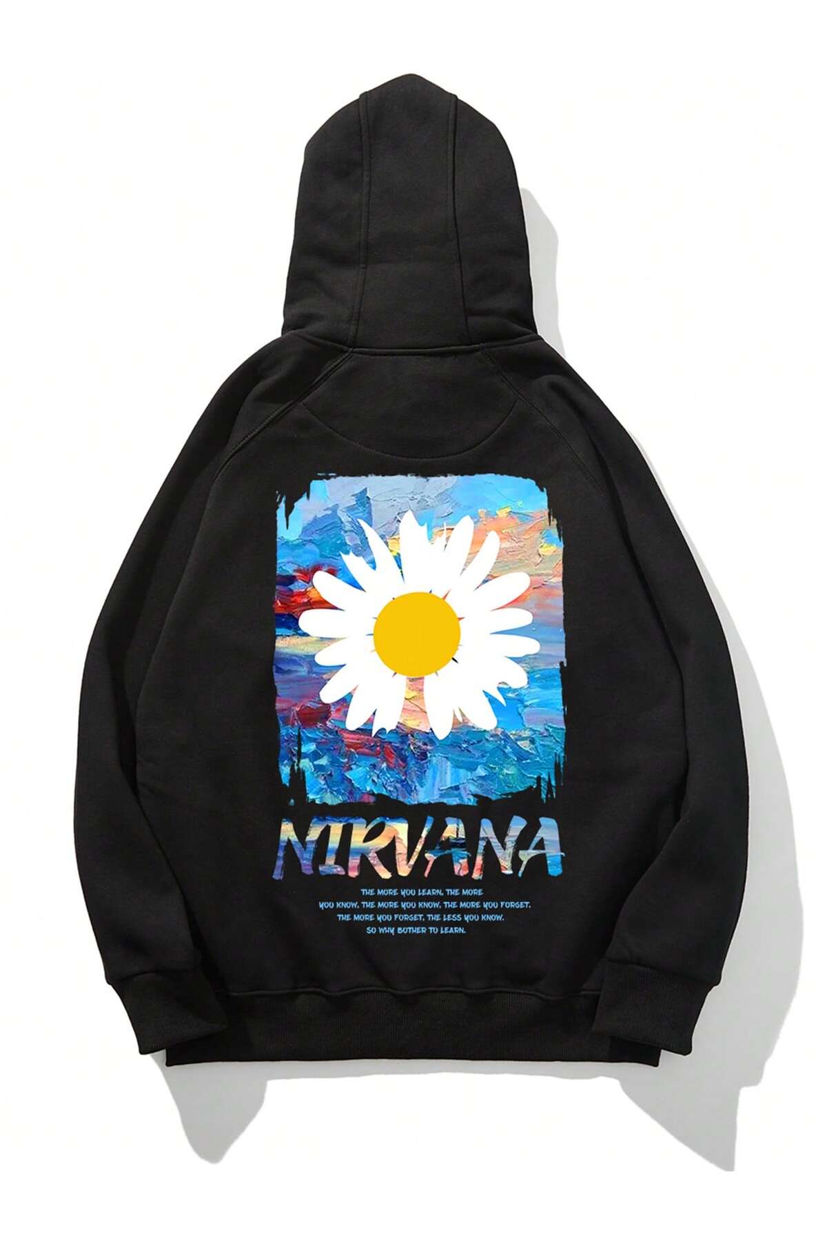 هودي أسود بطبعة نيرفانا ديزي أمامية وخلفية