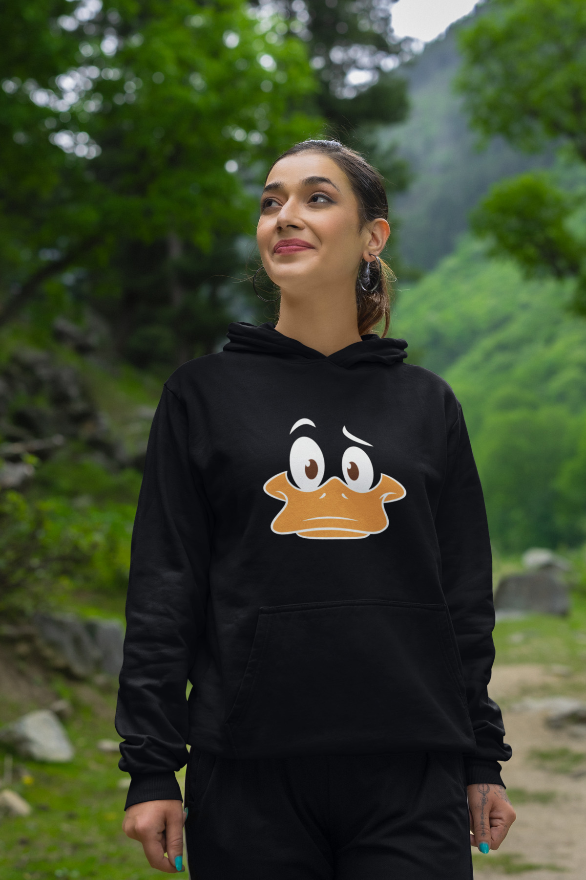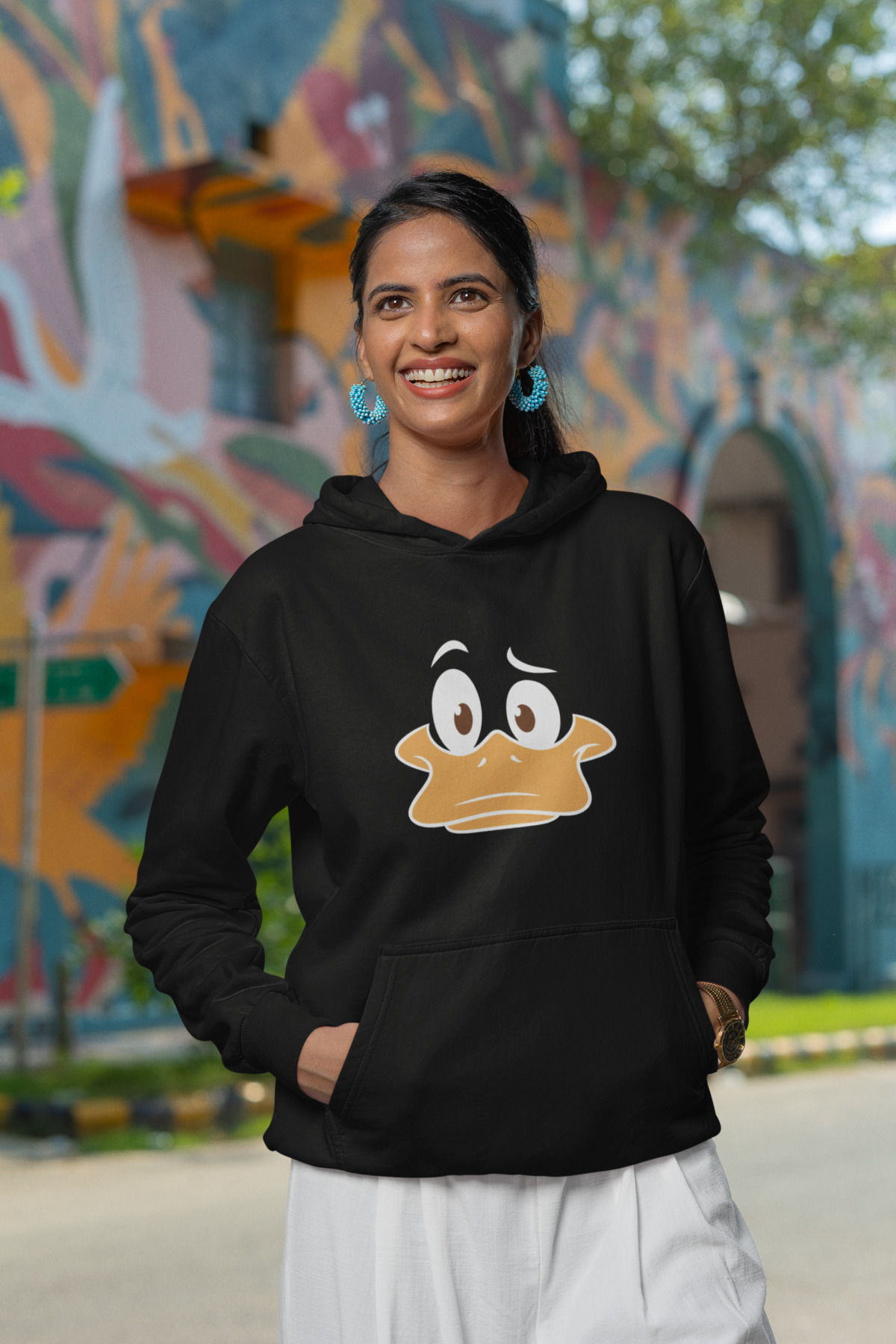 هودي للجنسين بطبعة وجه البطة المندهشة | سويت شيرت بغطاء رأس بطبعة شخصية كرتونية