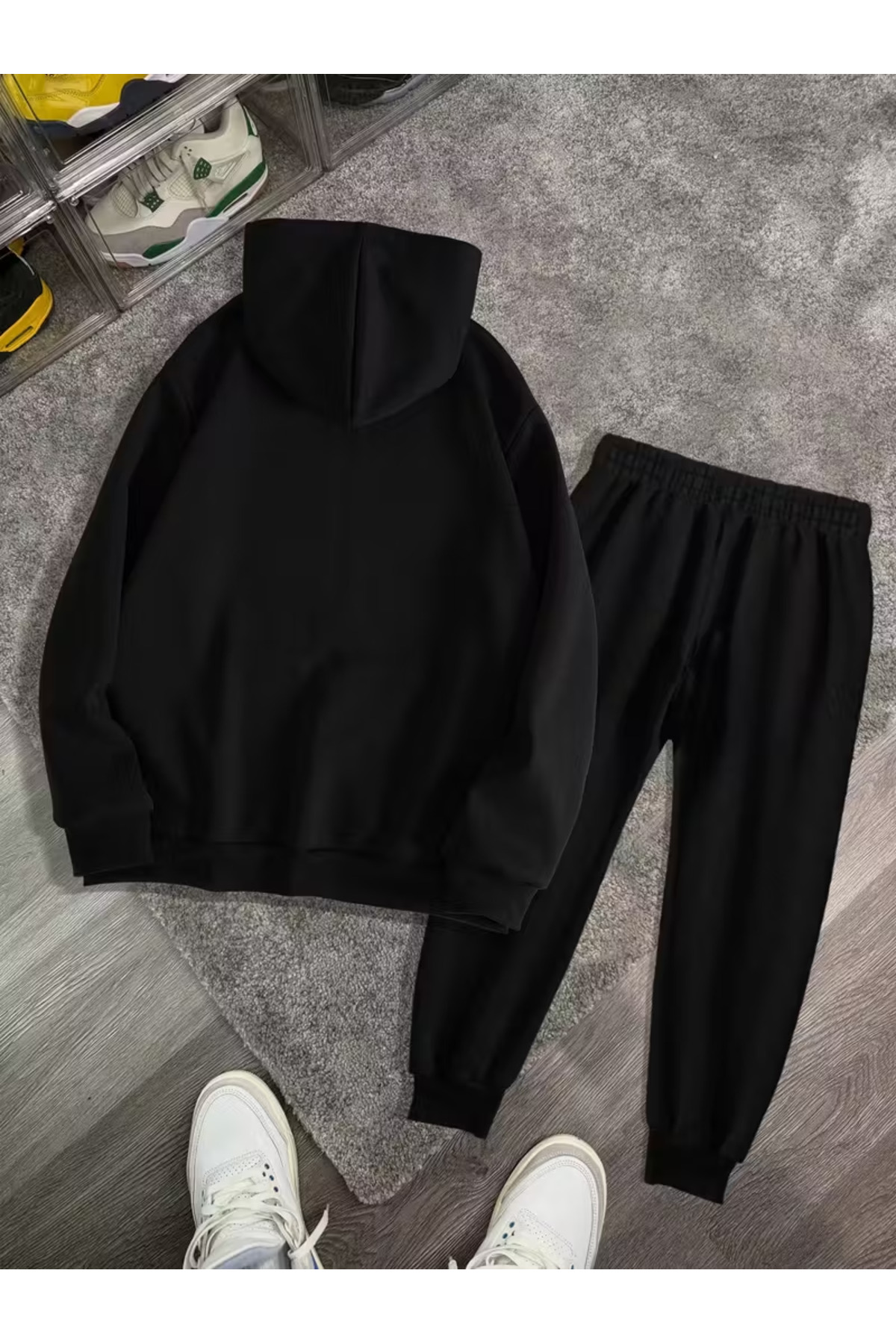 طقم سويت شيرت وهودي Milano بطبعة Unisex من 3 خيوط مبطنة