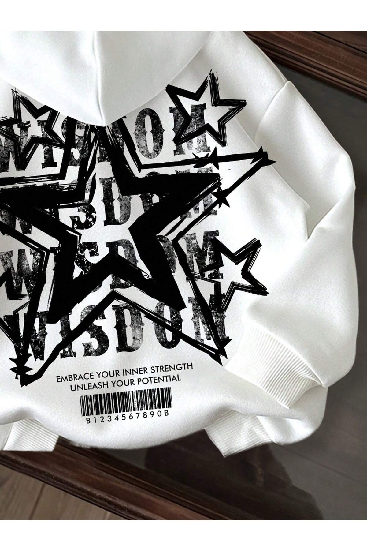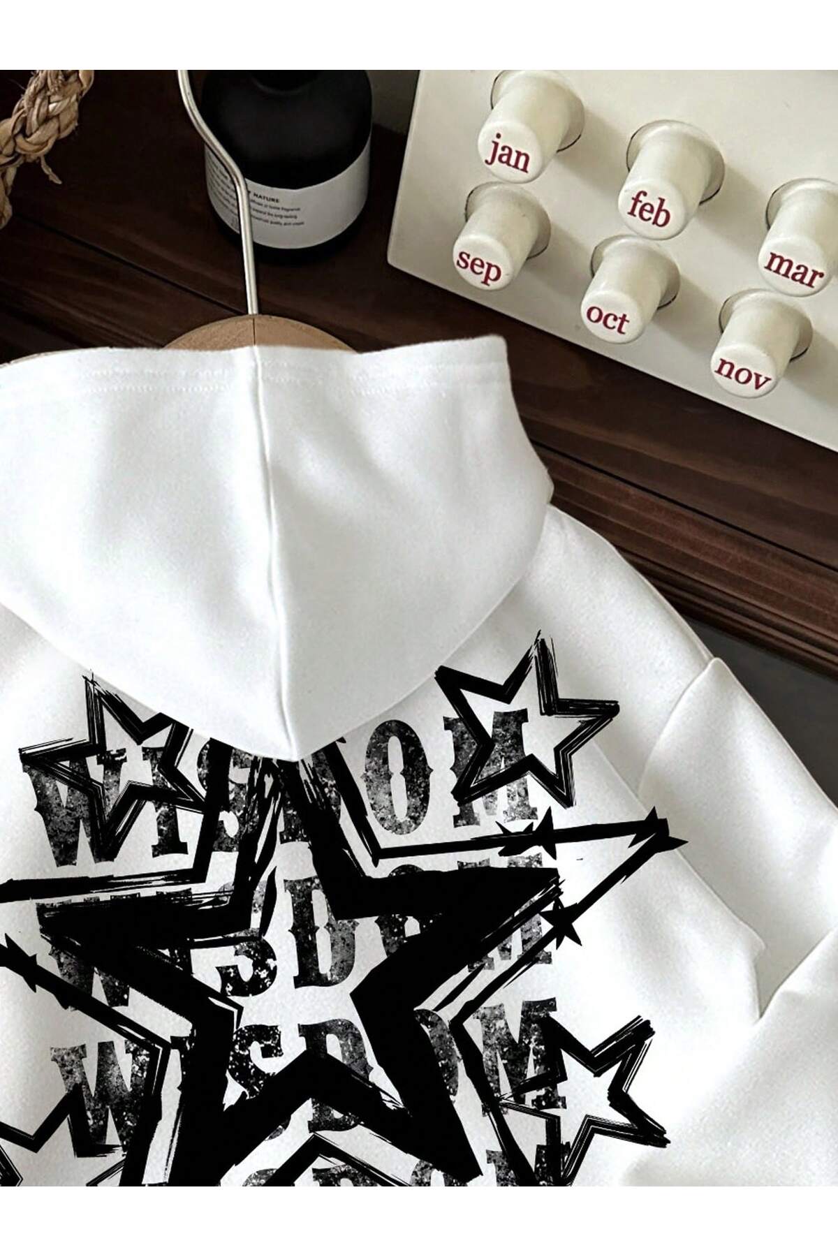 هودي أوفرواتش أبيض بطبعة نجمة خلفية